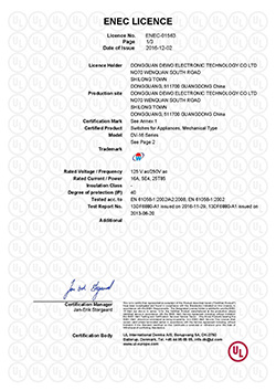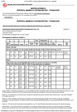 德傲微動開關CQC CB CE證書正式下發
